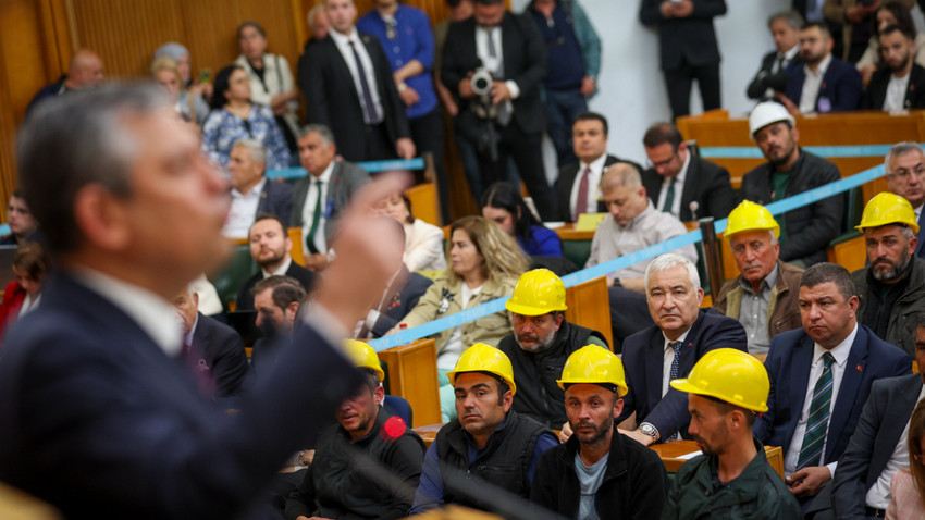 Özgür Özel, partisinin grup toplantısına, tazminat ve maaş alacakları ile özlük hakları için Kurtuluş Parkı'nda dokuz gündür açlık grevi yapan Doruk Madencilik işçileriyle girdi. Salondakiler Özgür Özel’i ve madencileri alkışlarla karşılarken, "Kurtuluş yok tek başına, ya hep beraber ya hiçbirimiz" sloganları attı.