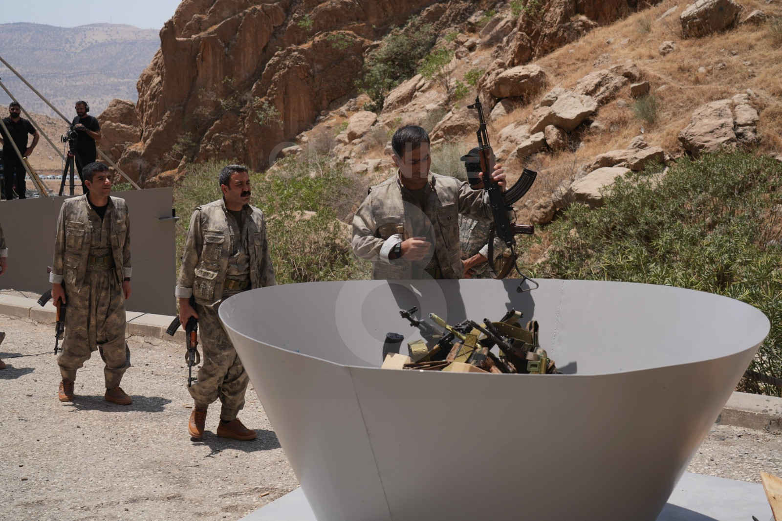 Terör örgütü PKK üyeleri Süleymaniye'de silah bırakmaya başladı. Sembolik törende 30 kadar PKK’lının silahlarını imha etti.