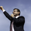 İmamoğlu sandalyeye çıkarak izleyicilere el salladı. Salonda "Cumhurbaşkanı İmamoğlu" sloganları atıldı.