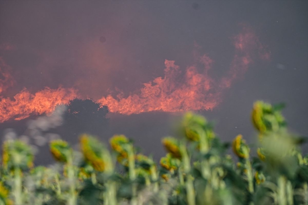 Havadan ve karadan müdahale edilen yangın, rüzgarın etkisiyle ayçiçeği tarlalarının bulunduğu bölge ve Kavakköy beldesi istikametine doğru ilerliyor. Bölgedeki şiddetli rüzgarla büyüyen yangın, ekiplerin müdahalesini zorlaştırıyor. Ekipler, yangının söndürülmesi için yoğun çaba sarf ediyor.