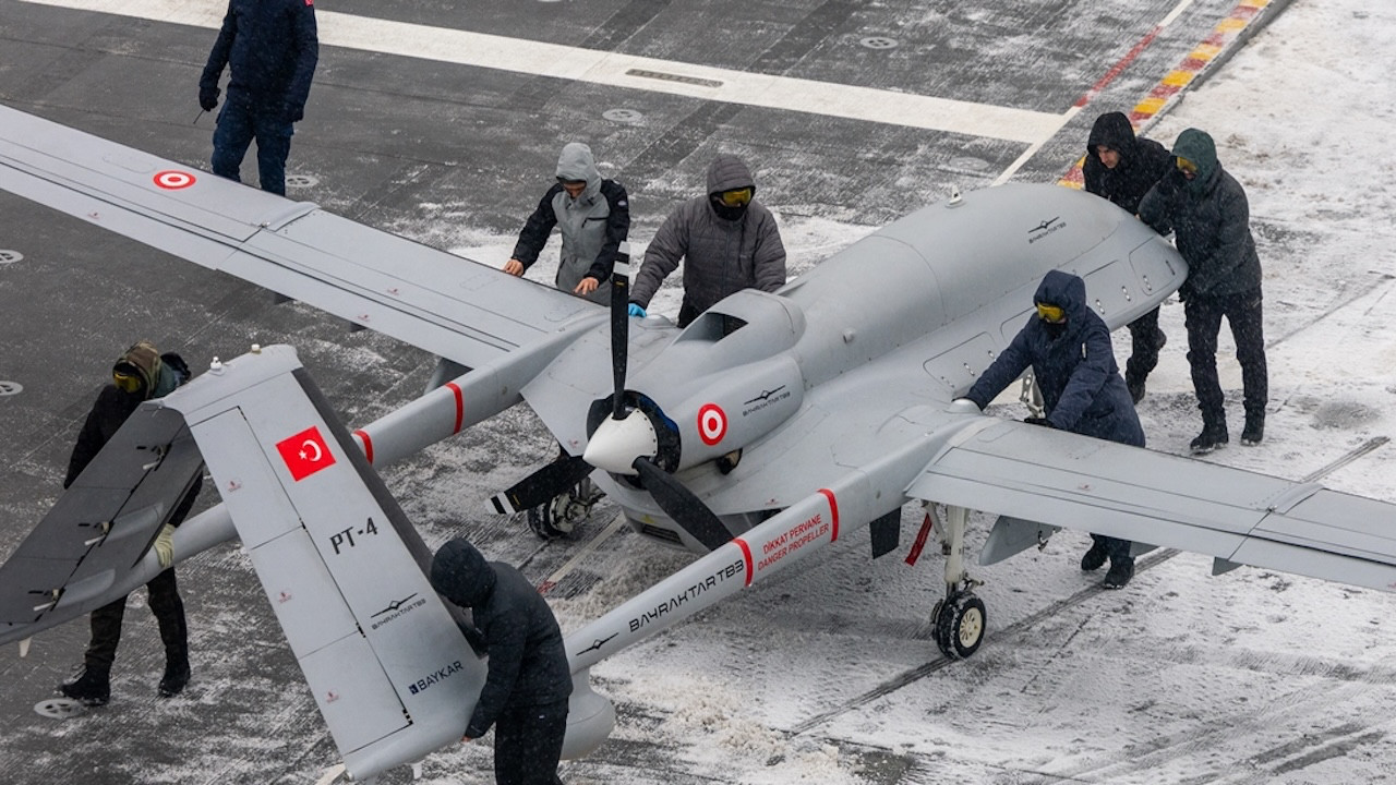 NATO'nun Steadfast Dart 2026 tatbikatı kapsamında TCG ANADOLU'da konuşlu bulunan Bayraktar TB3 SİHA, dondurucu soğuk, yoğun kar yağışı ve şiddetli rüzgara rağmen Baltık Denizi'ndeki uçuş gösterimini başarıyla tamamladı.