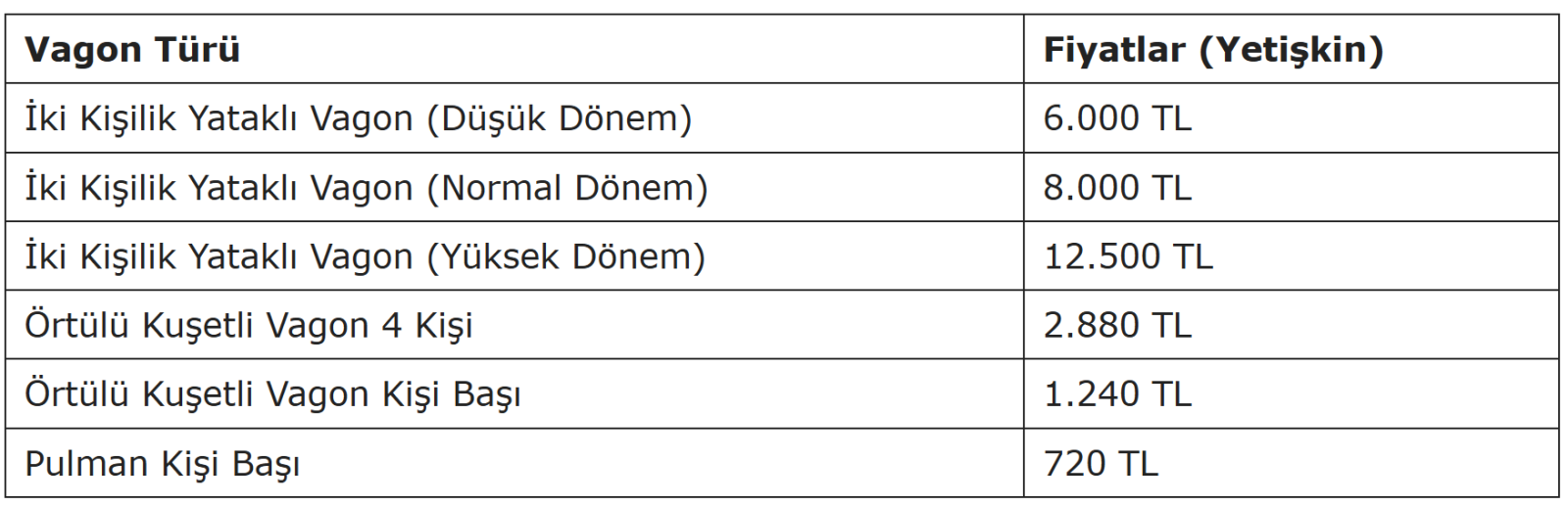 Bireysel yolculara ayrılan vagonların bilet satışı başlıyor