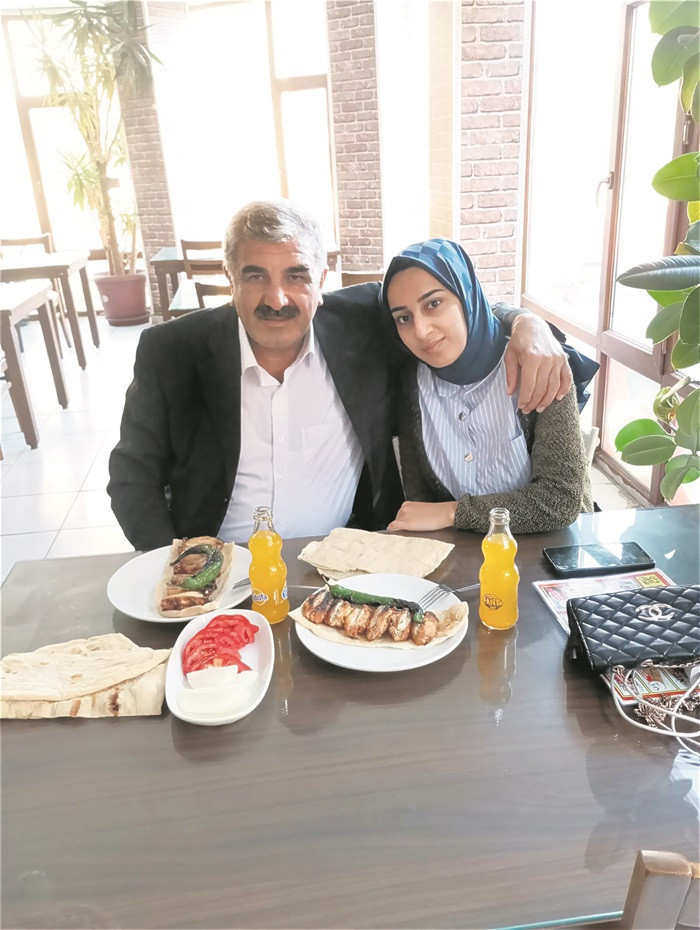 O lokantada çekilmiş bir de fotoğrafları var, onu gösteriyor ve devam ediyor acı içinde: “Allah bin kere razı olsun o lokantacıdan… Hem kebabı yaptı hem de bu fotoğrafı çekti ben rica edince… Son fotoğrafımız. Yemekten sonra kampüse geldik. Rojin önceden yurtla ilgili ne varsa araştırıp öğrenmiş. Arabadan iner inmez, ‘Şu tarafta yurt baba’ dedi. Kapıya kadar geldik. O yurda girdi eşyalarını bırakmaya, ben bahçede bekledim. Kapıdaki güvenlikçiye ‘Belki bir şey olur, kızıma ulaşamayız. Telefonunuzu verir misiniz?’ diye sordum. Verdi sağ olsun! Sonra Rojin geldi, bahçede dolaştık, okulu gösterdi. Ve vedalaştık, yurda girerken bana döndü, el sallayarak içeri girdi. Ben de videoya çektim…”