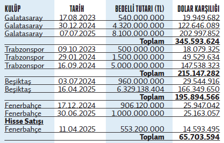 Payları halka açık olan kulüpler defalarca bedelli sermaye arttırımına gittiler ve buradan elde ettikleri kaynaklarla Bankalar Birliği borçlarını azalttılar. Başka şirketler bu sıklıkta yatırımcılarına gitseler muhtemelen hissedarların birçoğu buna katılım göstermez ve şirketi makus kaderine terk ederlerdi. İşte bu noktada taraftarların kulüplerine olan bağlılığı ağır bastı ve tüm kulüplerin bedelli sermaye arttırımlarına yoğun katılım oldu. 2023 seçimlerinden sonra bu yolla Galatasaray 345, Trabzonspor 215, Beşiktaş 195, Fenerbahçe ise 65 milyon dolar kaynak sağladı (Tablo 3). Bu tutarların çoğu Bankalar Birliği borcunun azaltılmasında kullanıldı.