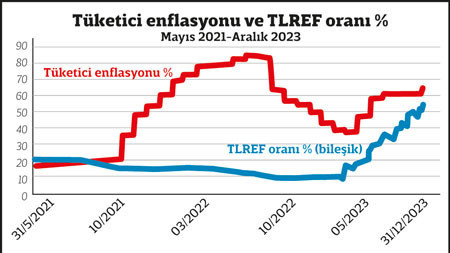 Dönemin TCMB Başkanı Naci Ağbal Bankalar Birliği imzasından bir gün önce yapılan para politikası kurulu toplantısında faizleri %17’den %19’a yükseltmişti. O sırada enflasyon %16 civarındaydı. Ağbal 20 Mart gece yarısı apar topar görevinden alındı, yerine Şahap Kavcıoğlu atandı. Türkiye Ekonomi Modeli veya Yeni Ekonomi Modeli adı verilen bir yaklaşımla enflasyon umursanmadan faizler hızla düşürülmeye başlandı. Bu erken hamle yoğun bir döviz talebine ve sermaye çıkışlarına yol açtı. 2021 yılı sonuna geldiğimizde politika faizi %14’e indirildiğinde enflasyon %36’ya fırlamıştı bile. Döviz talebini durdurabilmek için KKM ilan edilmiş, devlet garantisiyle TL tasarruflar dövize endekslenmişti. Bu sayede ömrü uzayan Türkiye ekonomi modelinin çarpık dengeleri genel seçimlere kadar devam etti. 2022 Kasım ayında TCMB faizi tek haneye inmiş ancak enflasyonumuz %85’i görmüştü. Bankalar Birliği Anlaşması’nın üzerinden altı ay geçmeden cumhuriyet tarihinde görülmemiş bir negatif faiz dönemi başlamıştı. %15-20 seviyesinde fiyatlanan kredilere ulaşabilenler ya hammadde stokluyor ya da ev ve araba alıyordu. Kredi alabilenler zenginleşiyor, borçları ise üç haneye yaklaşan enflasyon sayesinde hızla eriyordu. Varlık fiyatları patladı, tasarruflarını TL’de değerlendirenler, krediye ulaşamayanlar ve sabit gelirliler kaybetti.