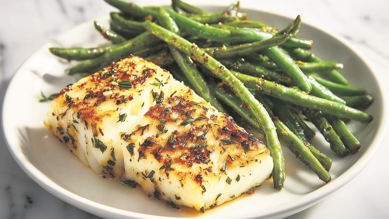Sarımsaklı tereyağlı levrek ve taze fasulye