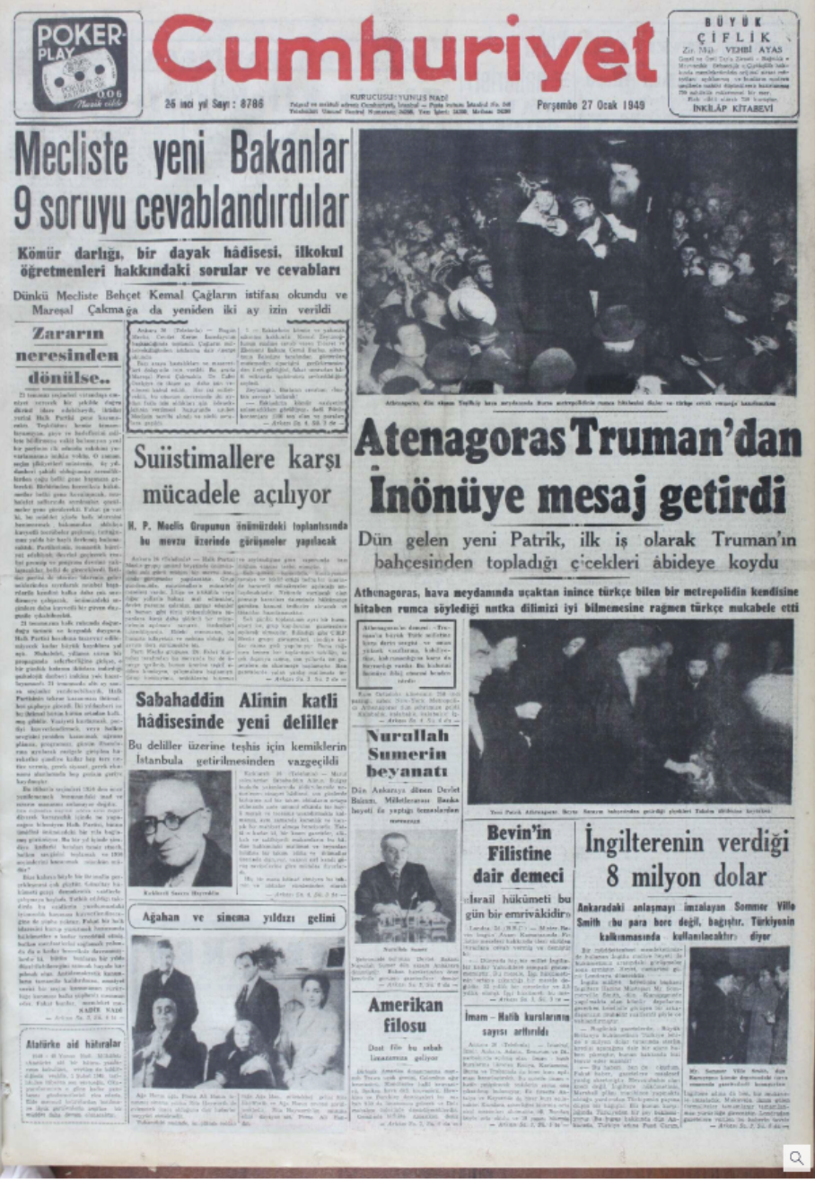Görüleceği gibi, Atenagoras’ın Fener Patrikhanesi için görünüşte hiçbir şansı yoktur. İşte bu noktada ABD Başkanı Truman, 1948 sonbaharında bizzat devreye girer ve dönemin Cumhurbaşkanı İsmet İnönü’ye yazdığı bir mektupla Atenagoras’ın Fener Rum Patrikhanesi’nin başına getirilmesi, öncesinde de T.C. vatandaşlığı kazanabilmesi için kendisine kolaylık gösterilmesi beklentisini iletir.