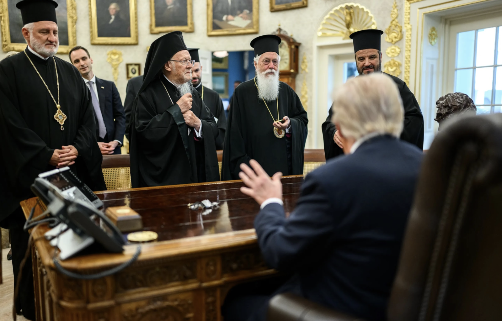 Şimdi geçen hafta perşembe günü Oval Ofis’te karşımıza çıkan görüntüye geçelim. Bu hadisede Fener Patrikhanesi’ni doğrudan ilgilendiren bir konunun Beyaz Saray’da Türkiye Cumhurbaşkanı ile ABD Başkanı arasındaki görüşmede gündeme geldiğini gördük.