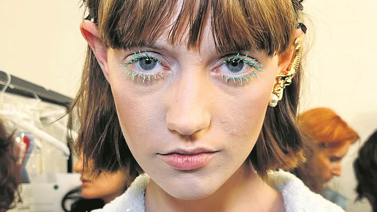 Makyaj trendlerinde ‘clean girl’ estetiğinin çok uzağında bir tavır yükselişe geçti. Alametifarikası bolca göz kalemi olan ve biraz da Wednesday dizisinin de etkisiyle popülerleşen modern gotik görünüm, ilkbahar yaz podyumlarında da karşımıza çıktı. Son yıllarda parti kızlarının en sevdiği markalardan biri haline gelen Blumarine, makyajda gotik tavrı gecenin ışıltısıyla bir araya getirdi. Makyaj artisti Patrick Glatthaar’ın içinde simler olan haki, antrasit ve siyah renkli kalemleri alt ve üst kirpik diplerine, göz pınarlarına da uzayacak şekilde uyguladı ve göz kapaklarına açık kahve bir far sürdü. Defile görünümünü tam bir parti kızına uygun kılan ana detaysa cildin bolca aydınlatıcı, dudaklarınsa bir lip gloss ile ışıl ışıl parlamasıydı. Evde denemesi hiç de zor olmayan bu defile makyajıyla modeller Kate Moss’un 90’lı yıllardaki parti görünümlerini andırdı.